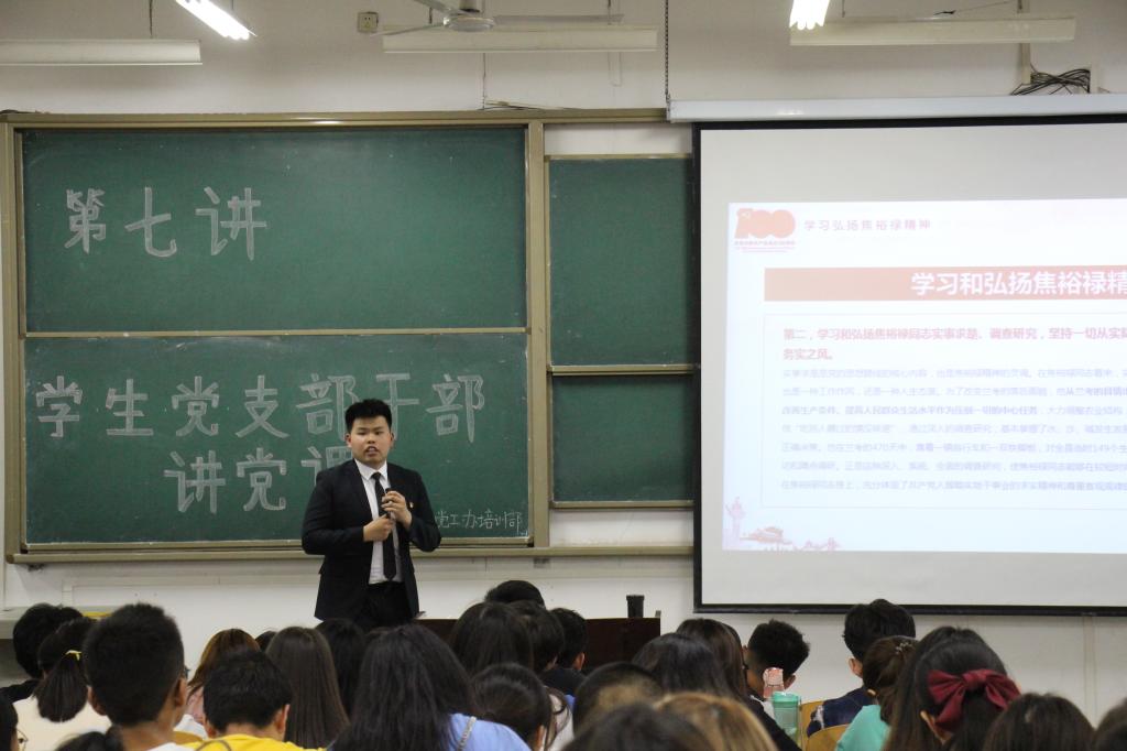 經濟管理學院管科系學生第二黨支部副書記姬祥飛同志以“學習焦裕祿精神”為題開展宣講。他介紹了焦裕祿同志的生平事跡和焦裕祿精神的實質內涵,指出大學生要樹立正確的世界觀、人生觀和價值觀,扣好人生第一??圩?。
