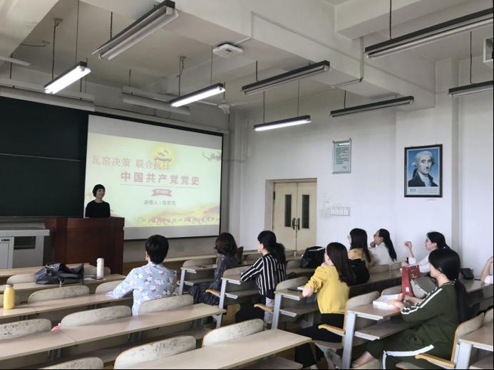 最后,支部副書記畢瑩老師及支部宣傳委員陳君均老師開啟了本支部的特別活動——我來講黨史。畢瑩老師向大家講述了黨史記錄中的第一位女黨員繆伯英的故事。險惡的斗爭環境,食無定時,居無定所且長期清貧而不穩定的生活并未讓這位女黨員低頭,她將自己的青春乃至生命奉獻給了自己堅定的信仰。陳君均老師向大家講述了瓦窯堡會議在中國革命中的重要地位。瓦窯堡會議總結了兩次國內革命戰爭的基本經驗,批評了“左”傾關門主義,解決了遵義會議沒有來得及解決的黨的政治策略問題,制定了抗日民族統一戰線的策略路線,有力地推動了全國抗日民主運動的發展。