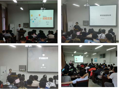首先來自能材1901班的張高赫同學以詼諧幽默的風格為同學們分享了他的學習經驗和對專業的思考,細化到每天的作息時間、注重抓住課堂時間學習,將專業知識與國家發展事業的緊密聯系,善于學以致用勤思考,并向大家分享了自己對新能源材料與器件專業的認識和思考,并指出大學是自由的大學,一定要勤思考,及時復盤,才可以更好的度過,引發同學們的一致贊同。能材1902班的劉增輝同學圍繞如何提升思維能力,以“如何應對我們的空窗期”為主題做出了深刻的闡釋,以嚴密的邏輯,從是什么、為什么到怎么做,環環緊扣,娓娓道來, 談到盡管行動會促進思考,但當你處于極端忙碌的狀態下,就會變成一個不斷執行任務的機器。忙碌可以,但是不要是無為忙碌,一定要合理規劃好自己的時間,讓每一位聽者都不得不折服于他的深邃思維和對生活敏銳的洞察力及思考力。最后,他真誠地向大一學弟學妹們發表寄語:只是希望你明白,不是以后的每一年,都會成長的這么快,以此鼓勵低年級的同學抓住黃金時間進行自我提升和學習。材物1801的“硬核學姐”張乃文同學圍繞如何制定長期目標和短期目標,通過自己的努力逐漸實現目標的真實體會,切身向同學們展現了制定切實且有效的目標對于自身發展的重要性。發言中,她對于自己所熱愛的物理的真情流露令在場的每位老師及同學都動容不已。正如張乃文同學自己所述,她將窮盡畢生經歷去追求自己所熱愛的事,給同學們帶來更加深刻的思考。材物1801班的李思瀾同學以她豐富的學科競賽經歷為例,給學弟學妹們分享了大學期間參與學科競賽的寶貴經驗和建議,以《阿甘正傳》的一句臺詞:“人生就像一盒巧克力,你永遠不會知道下一顆是什么味道?!比松錆M意外也充滿驚喜,建議同學們要找準定位,明確目標,了解自己適合的,然后做出正確的選擇,而不是盲目跟風,做好時間管理,分清主次,合理的分配時間才能事半功倍,提高做事效率。在嚴謹風趣中讓懵懂的大一同學對于專業學習及學科競賽時間分配選擇有了更加深入的認識和了解,也極大地激起了同學們參與學科競賽的熱情和興趣。最后,來自材物1701班的郭志強同學以他豐富的獲獎經歷和研究生備考經歷真切地告訴每位同學,大學四年應當如何有規劃的高效度過,才能讓我們在未來的畢業季收獲滿滿碩果。與此同時分享了自己鍛煉身體的感悟,強調身體是革命的本錢,只有擁有了強健的體魄,才能夠有足夠的精力去完成我們的學習和工作任務,也要有自己的興趣愛好,愛好可以緩解日常學習工作壓力,可以帶給我們愉悅和笑容,更會提高做事效率。
