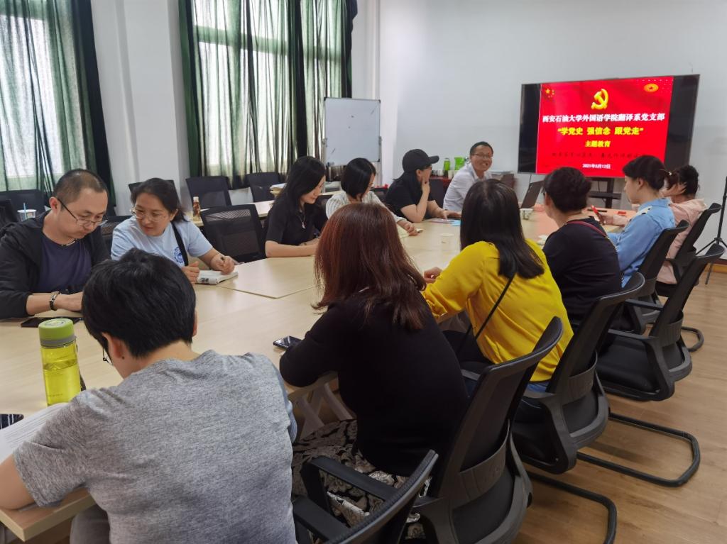 5月12日,外國語學院翻譯系教工黨支部按照學院黨委黨史學習教育計劃安排,開展了題為《學黨史強信念跟黨走》的專題黨課教育活動。會議由黨支部書記高鵬鵬主持。