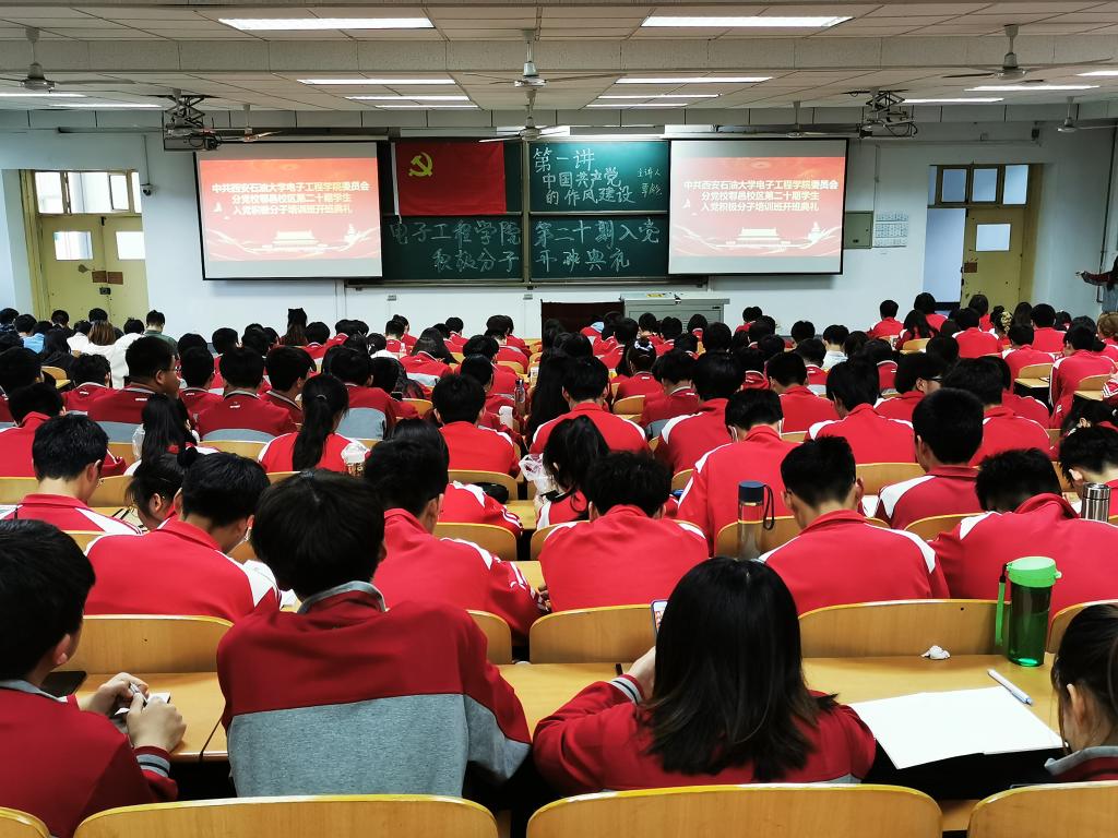4月29日晚19:00,電子工程學院第二十期入黨積極分子培訓班開班典禮暨黨課第一講在鄠邑校區A134教室舉行,活動由專職組織員胡思文主持,校黨委巡察辦公室主任覃彪、電子工程學院黨委副書記畢軼慧、學院團委書記、學生管理辦公室主任周毅華、全體輔導員以及學院本科生、研究生共244名學員參加。