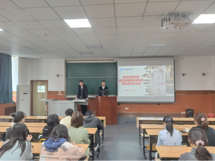 為進一步做好“五一”假期節前安全教育,加強研究生日常管理工作,提高研究生安全防范能力和就業競爭力,4月28日下午,經濟管理學院在雁塔校區東階202教室召開“五一”假期節前安全教育暨就業指導大會,研究生輔導員武威、柴睿及在校研究生100余人參加會議。