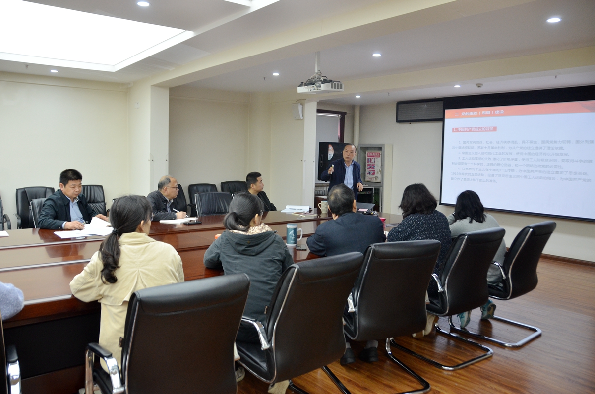 談建勤院長以“建國前黨的發展歷程”為黨史專題,結合工作實際,從學黨史的意義、內容及要求,黨的組織(思想)建設,“槍桿子里出政權”,里程碑和標志性的事件,為什么學黨史等五方面展開。他帶領大家重溫了中國共產黨成立的背景與意義,建國前的歷屆黨代會,從馬克思列寧主義到馬克思列寧主義、毛澤東思想的黨的早期指導思想的形成脈絡、三大起義(南昌起義、廣州起義、秋收起義),根據地的斗爭及長征,抗日戰爭(國共合作),解放戰爭(遼沈戰役、淮海戰役、平津戰役),黨史地理標志,黨史標志性人物等建國前的黨史內容,再現了共產黨人開天辟地、敢為人先的首創精神和中華民族堅定理想、百折不撓的奮斗精神。
