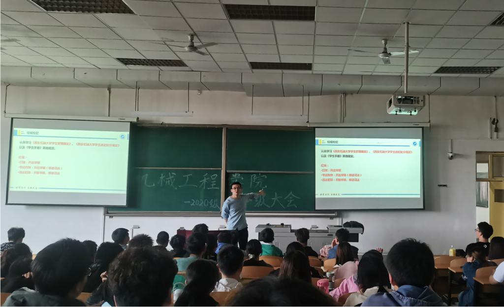 根據學校進一步嚴肅校規校紀加強學生教育管理專項教育的統一安排,機械工程學院于4月19日起陸續召開學生工作例會、線上線下結合的各級年級大會、各班班會、學生干部會議,認真學習《學生手冊》中《西安石油大學學生管理規定》、《西安石油大學學生違紀處分規定》等學生管理內容,并進行校運動會、“五一”假期等安全紀律教育,同時安排各年級的重要事項。各年級輔導員主持相關會議。
