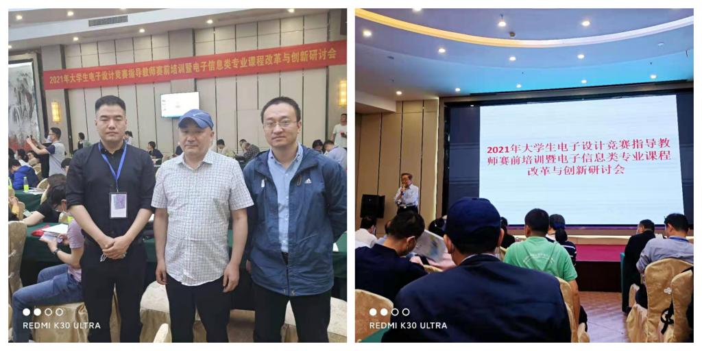 2021年4月24日-4月26日,由全國大學生電子競賽組委會、中國電子教育學會主辦的2021年大學生電子設計競賽指導教師賽前培訓暨電子信息類專業課程改革與創新研討會隆重召開。我院組織電子信息工程專業骨干教師、電子競賽負責人參加了此次大會。會議介紹了以電子競賽促進教學改革的組織原則、賽題的發展方向、賽題解析、電子信息類專業課程改革與創新分享。全國來自北京大學、浙江大學、西安交通大學、西安電子科技大學等多所高校的教授、專家以及企業代表做了詳實的報告,大會組織部分電子競賽成績優秀的高校分享了經驗。我院教師通過認真學習,吸取好的經驗,為電子信息工程專業的教學設計拓寬了思路,為競賽培訓教學環節提供了更好的方法。