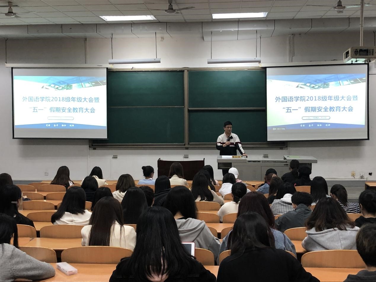 外國語學院通過召開日常安全教育管理和 “五一”假期專項安全教育大會等工作,認真排查學院安全隱患點,強調學風建設工作,積極營建積極向上的學院院風,鼓勵同學們積極參與學科競賽,創新創業競賽以及各項文體活動。希望同學們以獨立、自律要求自己,時刻牢記并遵守“品行端,學風正,紀律嚴”,腳踏實地,奮力成長。