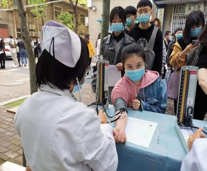 校醫院4月26—28日,在鄠邑和雁塔校區分別開展學校本科生和研究生畢業生體檢工作,為確保畢業生體檢工作的順利開展,蘇文甫副校長及校醫院領導對體檢工作非常重視,親自參與并積極指導,制定了相應的體檢流程、設置了合理的崗位分工,并針對目前新冠疫情情況,制定了詳細的體檢疫情防控應急預案,按要求落實好疫情防控。校醫院在保證正常的接診的同時,調動全體職工的積極性,加班加點,順利的完成了全校近5000名本科生和研究生畢業生的體檢工作。