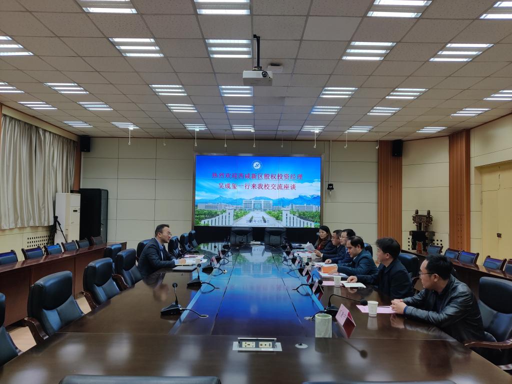 4月23日,西咸新區股權投資經理吳成璽來我??疾煺{研,座談會在雁塔校區第二會議室召開,科技處、石油工程學院、化學化工學院及機械工程學院相關負責人參加此次座談。科技處副處長劉順主持會議。