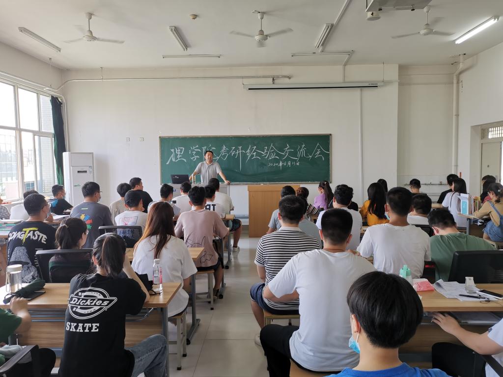 理學院以考研就業為導向,不斷為學生成長成才助力,為夢想加油。在入學之初,學院便強調學無止境,勇攀高峰,在新生心中埋下考研深造的種子。進入高年級,學院定期召開考研動員會,幫助學生堅定考研信念。同時,分專業、分階段扎實開展考研經驗交流會,從備考到應試,全方位為學生提供考研指導。輔導員丁亦喆精準施策,積極為學生提供考研自習室、考研交流群,考研“一對一”交流等服務。黨委副書記馬小剛在學生考研復試的過程中堅持一對一談話、一對一指導,幫助學生實現考研目標。在考研前夕,學院領導帶領全體輔導員為學生加油打氣,發放“考研禮包”,召開座談會,為考研學子送上貼心鼓勵,殷殷寄語。