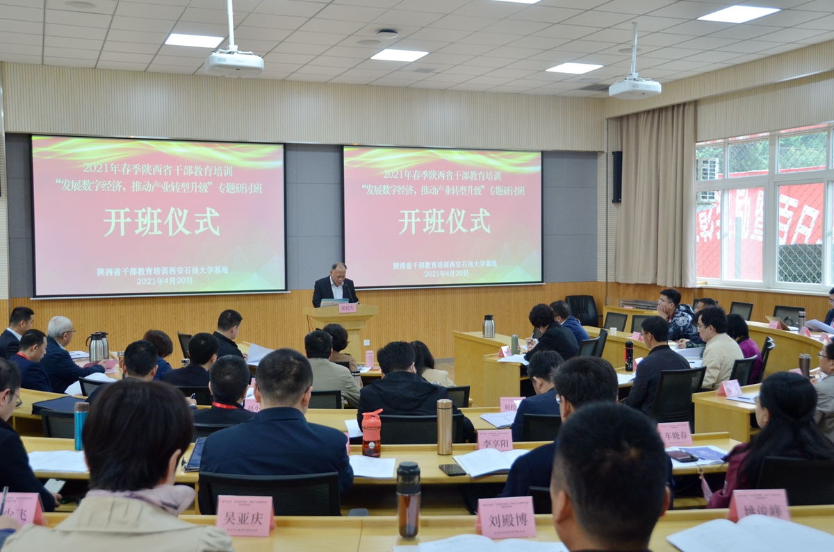 4月20日上午,由省委組織部主辦、省干部教育培訓西安石油大學基地承辦的2021年春季陜西省干部教育培訓“發展數字經濟,推動產業轉型升級”專題研討班順利開班。繼續教育學院副院長吳民生參加開班儀式并做動員講話。