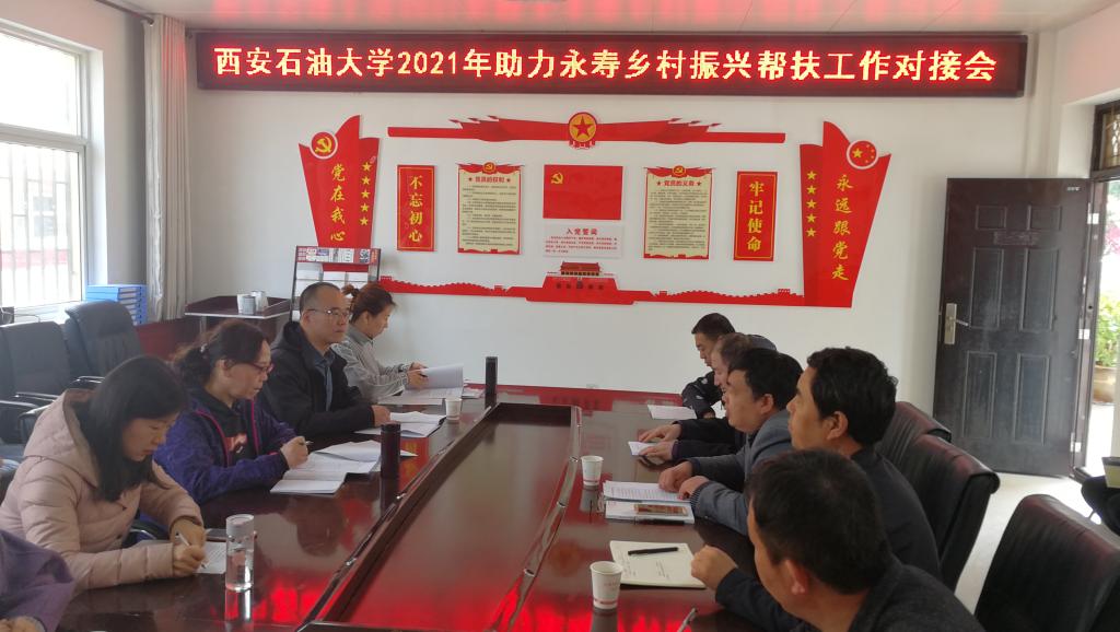4月14日,我校赴永壽縣開展鄉村振興定點幫扶工作對接調研,召開2021年校地鄉村振興定點幫扶工作對接會。校工會主席袁玎、副主席劉陜軍、圖書館副館長孫琳、永壽縣教育局督導主任黃健身和永壽縣相關部門人員參加座談。