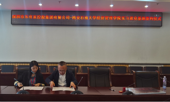 4月16日,經濟管理學院與深圳市樂有家控股集團有限公司實習就業基地簽約儀式在鄠邑校區圖書館第二會議室舉行。學院黨委副書記王剛、學管辦主任劉冰及2018級輔導員陸曉寒參加,深圳市樂有家控股集團有限公司地區負責人寇亞倩及西安分公司有關人員出席。