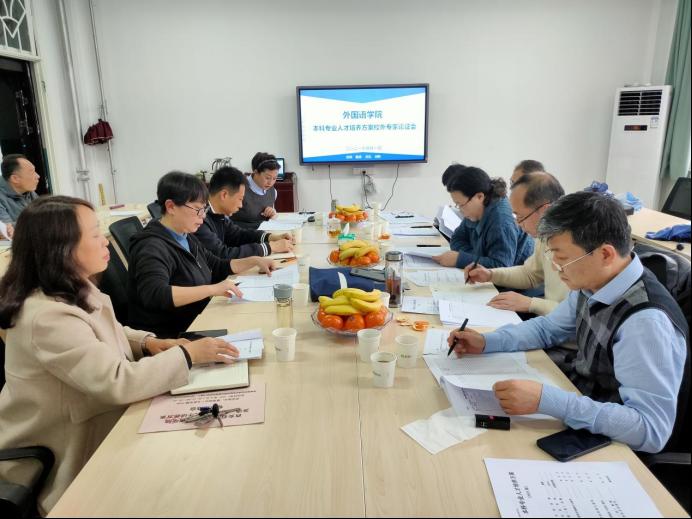 為進一步提升2021年本科專業人才培養方案修訂工作的科學性和規范性,深化人才培養模式改革,提高人才培養質量,外國語學院在校內專家論證的基礎上,于4月1日在學院706會議室召開了校外專家論證會,征詢與本專業密切相關的兄弟院校專家的意見和建議。西北大學崔雅萍教授、西北政法大學馬慶林教授、西安建筑科技大學楊延龍教授、西安外國語大學徐玉臣教授和西安理工大學李慶明教授出席會議。外國語學院院長于艷英,副院長劉輝、陳武及英語和翻譯專業帶頭人、負責人及系主任參加會議。