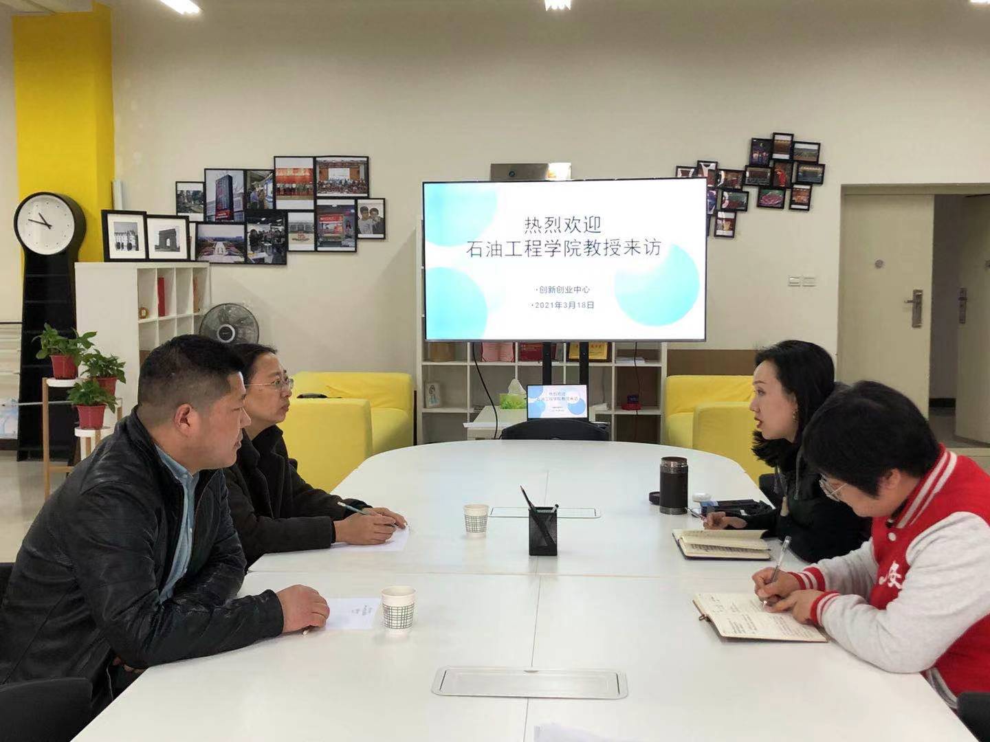 3月18日上午,石油工程學院蔣海巖教授、創新創業專員朱戰威老師一行到訪創新創業中心,與創新創業中心主任賈莉娜就學生科研創新能力培養、學生創新項目等方面展開討論。