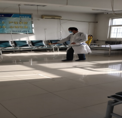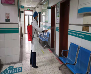 工作人員做好疫苗接種場地消殺準備工作 |