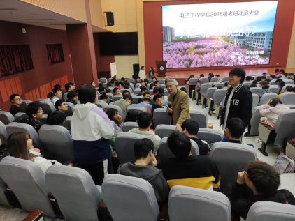 2021年3月24日下午,電子工程學院在鄠邑校區弘石學術報告廳召開了題為“人生能有幾回搏?”的2018級考研動員大會。本次動員大會邀請到了我院退休教授漢澤西老師擔任主講嘉賓,會議由學院2018級輔導員錢宇航老師主持,2018級200余名學生參加了本次活動。