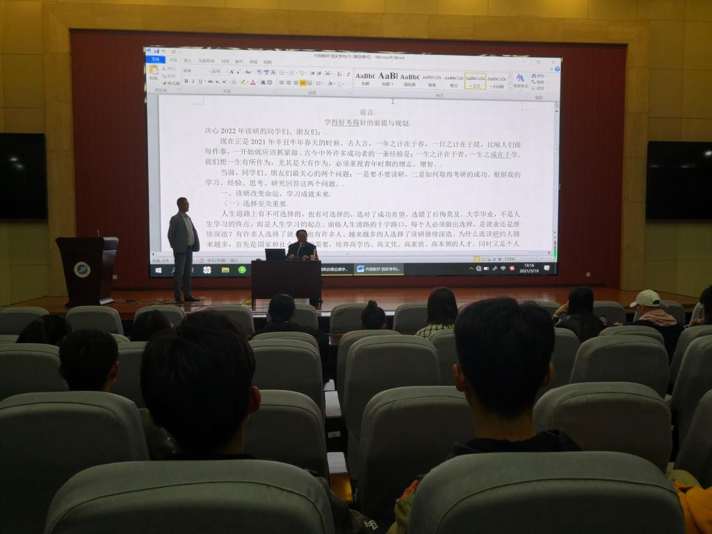 樊曉旭老師以“我和我的大學”為主題,循循漸進的和同學們分享了大學階段的目標和任務,歡樂和喜悅。他帶領同學們共同完成了“人生年線”和畫“豬”游戲,在游戲中讓同學們感受到用于學習、拼搏的時間短暫,感受到由于自身性格的不同直接會影響對未來擇業的選擇標準不同。樊處長給同學們提出了三點建議:一是要有時間的緊迫感,大三年級階段要切實體會到時間的重要性,要做時間的“掌控者”;二是要有明確的目標定位,三年級就要做好考研、就業、入伍、考公和考編的充分準備,要做未來的“自主者”;三是要珍惜同學情誼,三年的相處讓同學們心心相惜(惺惺相惜),珍惜大學的同窗之情,要做同學友情的“傳播者”。