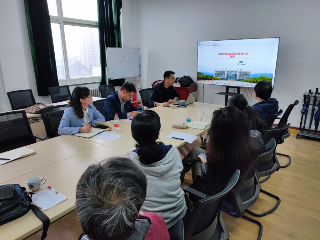 3月12日下午,外國語學院在雁塔校區1號教學樓727會議室召開了2020年度黨支部書記述職大會,學院黨委委員、教工黨支部書記、專職組織員參加會議。會議由學院黨委書記田虹霞主持。