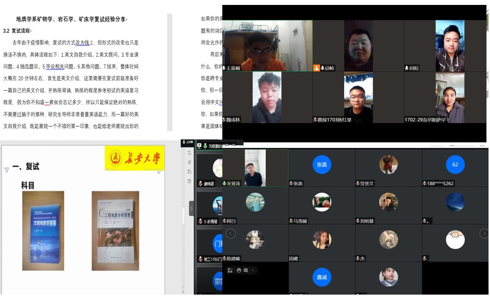 2021年3月15日至3月16日,地球科學與工程學院根據考研上線學生的目標院校,有針對性地組織了六場考研復試指導會,邀請考取相應學校的校友擔任主講嘉賓,2021屆考研上線的80余名學生分院校參會。