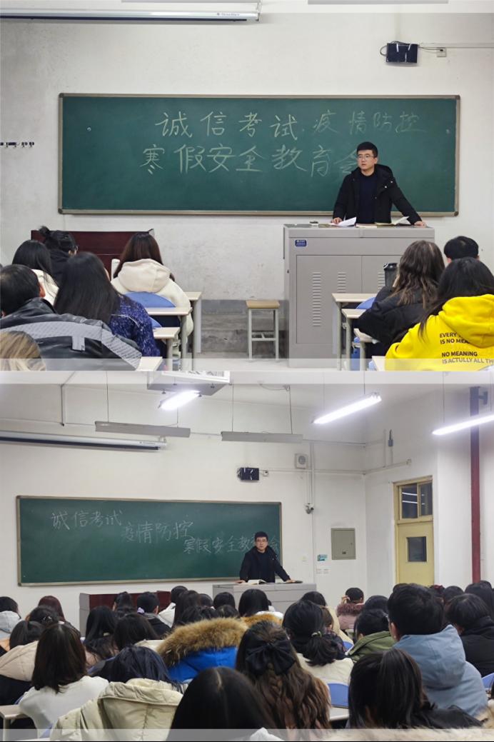 為認真貫徹落實學校對誠信考試、疫情防控和寒假安全教育相關通知的要求,外國語學院根據近期疫情防控新要求,在結合學院實際的情況下分別以線上、線下和分班、分專業的形式在各年級召開誠信考試、疫情防控和寒假安全教育大會。2017級、2019級輔導員陶李,2018級、2020級輔導員陳浩分別主持召開所帶年級的教育大會。