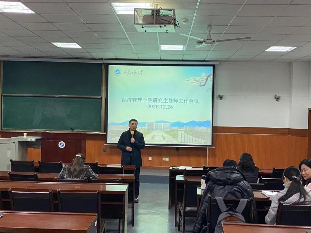 學術報告結束后,經濟管理學院召開了碩士研究生導師工作會議。經濟管理學院院長王君萍教授首先對研究生導師在研究生培養過程中的責任進行了強調,她指出應充分發揮導師在研究生教書育人中的第一責任人作用,在切實加強研究生思想政治教育工作的同時,也要充分保證研究生的培養質量。導師應在學生開題報告、中期檢查、畢業答辯的培養全過程發揮作用,防止把“相應責任”泛化理解、片面化認定、極端化執行。