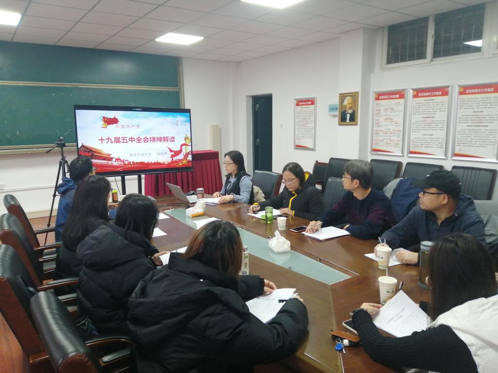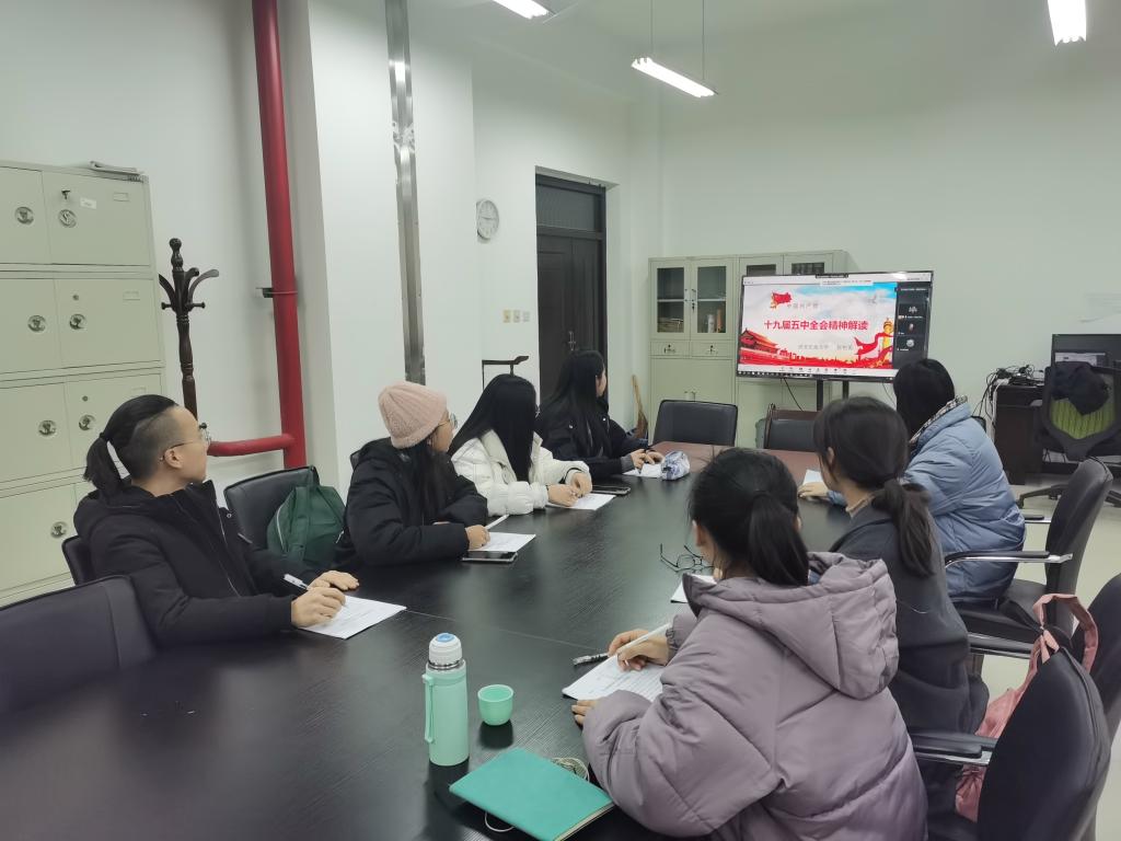 會議第二階段,邀請馬克思主義學院副教授、大學生宣講團指導教師郭艷英給全體師生做了《十九屆五中全會精神解讀》的專題輔導報告。郭老師從十九屆五中全會概況、“十四五”規劃《建議》的主要內容、全面學習貫徹黨的十九屆五中全會精神等幾個方面為大家解讀了十九屆五中全會精神。輔導報告全面深入,細致到位,為宣講團成員深入學習、全面領會黨的十九屆五中全會精神啟發了思路,理清了脈絡,具有很強的指導作用。