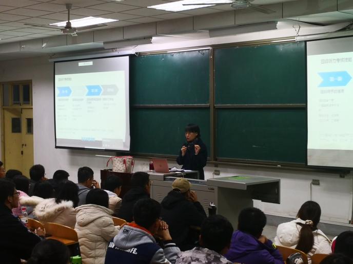 講座中,教師結合實例將學生們的熱情充分調動起來,從專業角度對英語的學習方法進行整合歸納講解。同學們積極發言,現場氣氛活躍。講座臨近結束時,學生們就他們在備考四級考試過程中碰到的困惑與問題與主講教師進行了簡單但富有成效的交流。