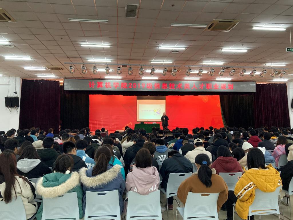 12月9日晚,計算機學院在鄠邑校區騰輝活動中心舉辦“信息技術類人才職業規劃”報告會。前阿里P9,10年互聯網行業從業經驗,阿里最年輕的資深專家之一焦英俊老師受邀為大家作報告,輔導員王天航及全體2019級學生參加報告會。