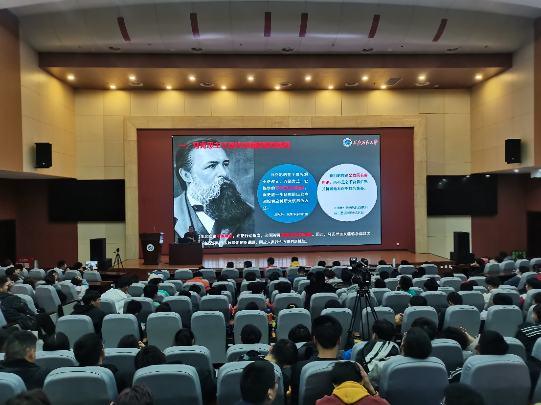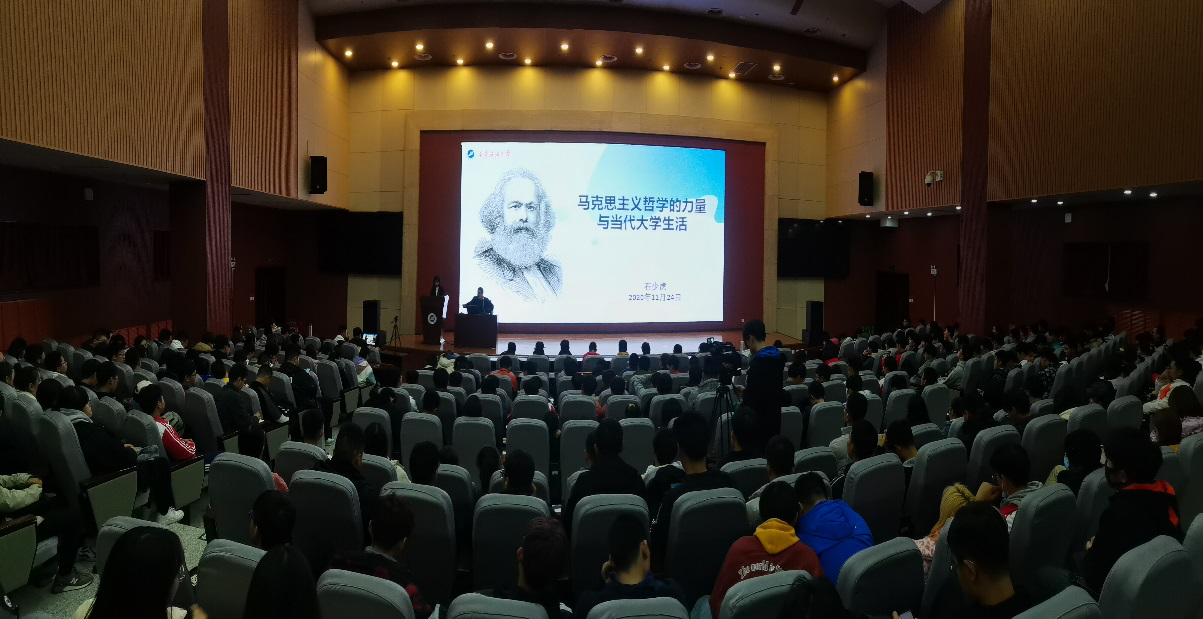 本次講座主要有兩部分,即馬克思主義哲學在現當代社會中的價值及其與如何指導當代大學生活。石少虎老師首先拋出兩個問題,即“何為哲學”和“哲學又為何”,又以幽默風趣的語言講述了季羨林先生的故事和“三人行必有我師”的例子,給出自己的解答——哲學是萬物的本源,是智慧,是樂趣。通過問題和事例引發大家的思考,進而引入本次講座的第一個主題——馬克思主義哲學,石老師向同學們介紹了三個方面的內容:馬克思主義當代價值的理論挑戰、馬克思主義的理論闡釋、堅定馬克思主義的理論自信,通過對上述論點深入淺出地精彩講解,使得同學們對馬克思主義哲學當代價值的認識更加明晰。隨后,石老師引入“馬克思主義哲學與大學生活”這一核心觀點,他認為,大學的生活與責任即是要學會辯證地看待問題、要敢于人先大膽創新。在介紹完馬克思主義哲學與大學的聯系之后,石老師用同學們樂于接受的語言方式講述了歷史上的名人事例,并對比古今中外思想成果,探尋了人類思想發展的脈絡,更新了同學們對馬克思主義思想的高度,更是讓同學們對于馬克思主義在未來中國發展產生了更美好的憧憬與強烈的自信。