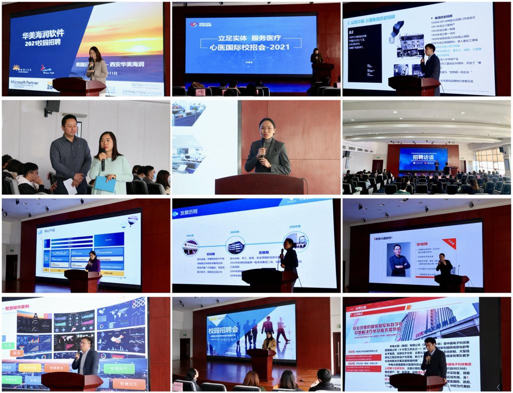 活動中,西安軟件園12家參會的IT企業代表進行一一宣講,各招聘單位詳細介紹了企業的發展戰略、業務范圍、人才需求、企業文化和福利待遇等同學們關心的具體問題。