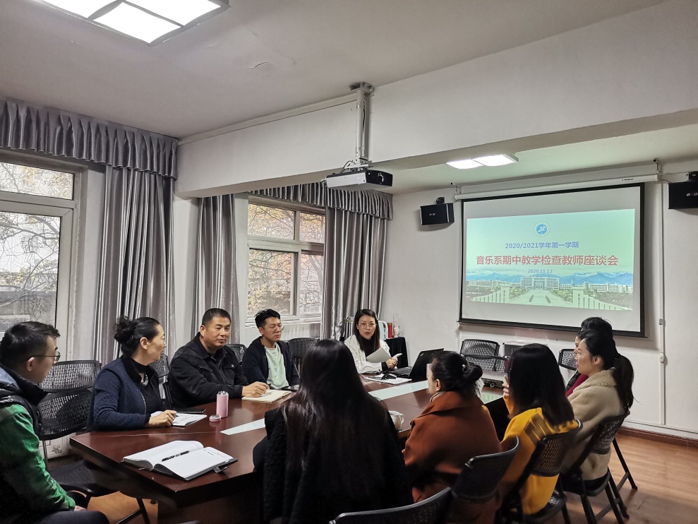 11月12日上午,音樂系在系三樓會議室召開了期中教學檢查教師和學生座談會。校督導楊美萍、張保平、史俊,系督導何云、張欣以及系教師和學生代表參加了此次座談會。座談會由系副主任張帆主持。