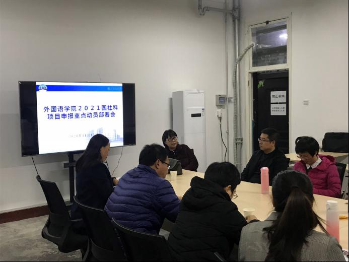 11月13日下午16:30,外國語學院在雁塔校區1#727召開2021年度國家社會科學基金項目申報動員部署會。學院黨委書記蔡強、院長于艷英、副院長劉輝、副院長陳武、我院所有教授、博士和在讀博士教師及其他有申報意向的教師參加了本次會議,劉輝副院長主持會議。