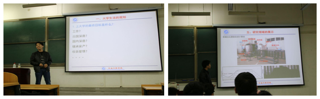 石油科技學社社長王志超主持了此次活動,石工院王海洋博士分享了他在西石大八年的學習生活。此次活動,旨在通過借鑒優秀學生的學習經驗和生活經歷,搭建起本科生與碩博研究生學習交流平臺,推動同學積極參加創新活動,營造石油科技學社內部良好的學習氛圍。