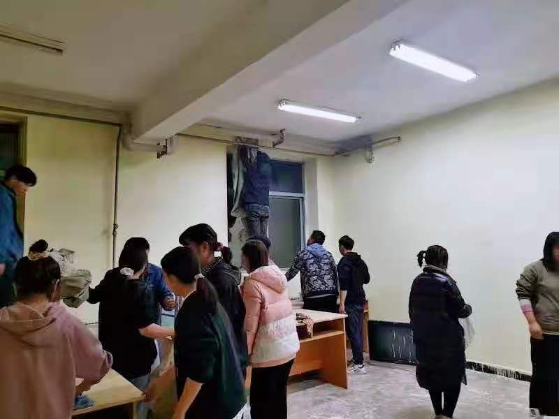 在活動中,2020級輔導員李彥兵老師帶領學生們發揮繪畫、書法等特長,著重提出宿舍走廊以及宿舍自習室的文化設計方案。為此,學院組織學生將優秀的繪畫作品張貼在宿舍走廊兩側上,利用所學的專業知識自主設計裝飾宿舍自習室。同學們積極參與壁畫的張貼與設計,不僅展現了人文學院學生的風采,而且潛移默化的提升了同學們的審美和創新意識。此外,人文學院還創造性的為宿舍配備了消防安全器材,增強了校園住宿的安全性,使同學們擁有了獨立、安全、溫馨、便捷的學習生活環境。