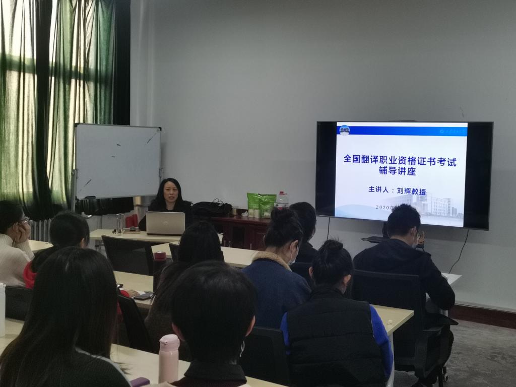 11月10日晚7:30分,劉輝教授將在鄠邑校區石工地科樓115為2020級翻譯碩士研究生做全國翻譯資格證書考試輔導講座。(圖:王瀟/文:楊萌)