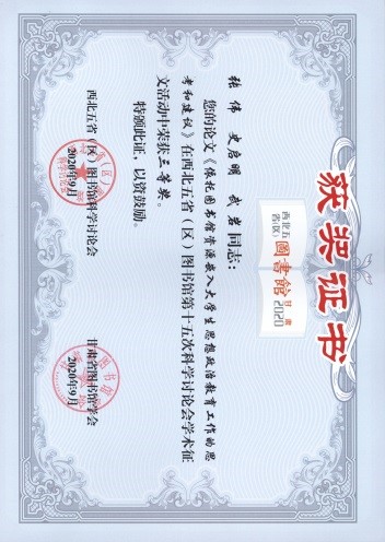 本次研討會共收到來自西北五省(區)各高校圖書館提交的論文242篇,案例37個。經過陜西省圖書館學會推薦、大會組委會最終評選,我校圖書館張偉、史啟明、武巖提交的論文《依托圖書館資源嵌入大學生思想政治教育工作的思考和建議》榮獲學術征文活動三等獎。據悉,此次科學討論會評選皆為推進西北地區圖書館事業高質量發展,展示近年來各級各類圖書館的工作成果,發揮圖書館優秀業務案例和學術論文的示范引領作用。