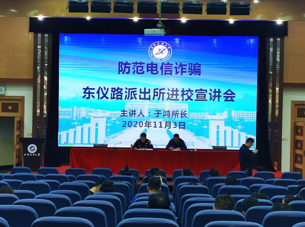 東儀路派出所所長于鴻就如何防范電信詐騙,結合實際發生在身邊的案件,給現場研究生詳細講解了常見電信詐騙的內容及形式,提醒同學們提高防騙意識,預防此類案件的發生。