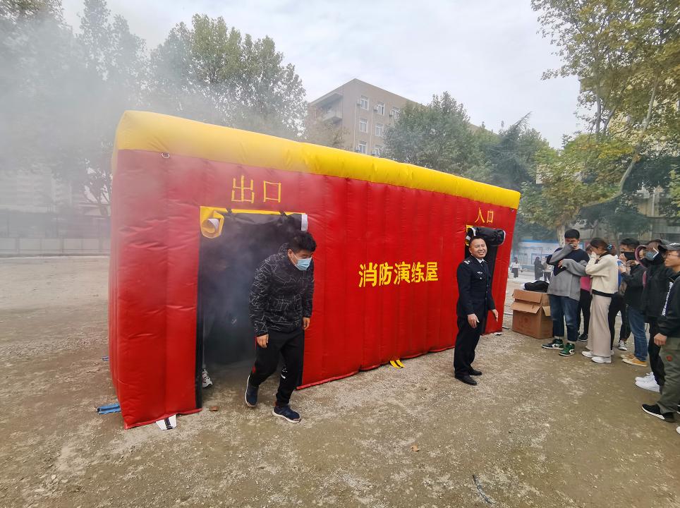 消防安全知識講座上,陜西省安居消防中心何海立教官也從實際案例出發,生動的講授了防火、滅火、自救等消防安全知識。講座后,在何教官與保衛處工作人員的指揮指導下,研究生同學們來到戶外參與現場演練,學習手提式滅火器的使用和模擬火場逃生,為災中自救做好了能力儲備。