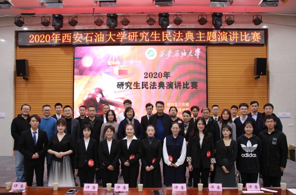 為進一步加大對《中華人民共和國民法典》的學習宣傳工作,推動我校研究生學習民法典、運用民法典,將民法典的宣傳教育落到實處,2020年10月29日19時,由研究生工作部主辦、經濟管理學院承辦的西安石油大學2020年研究生民法典主題演講比賽在鄠邑校區經管人文樓118室舉行。