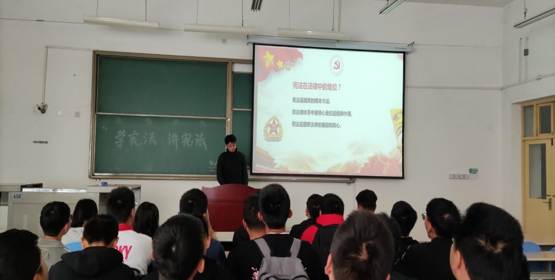 對于“學憲法、講憲法”系列活動,各班主要通過班會的形式使同學們學習憲法內容,提高對憲法的認知程度,了解憲法的重要性,營造出濃厚的學法、講法、守法的氛圍,調動了全體同學學法、用法的情緒,呼吁同學們遵法守法從自身做起,爭做文明時代的好青年、遵紀守法的好公民,為實現中國特色社會主義法治、實現偉大的中國夢注入新鮮的正能量。