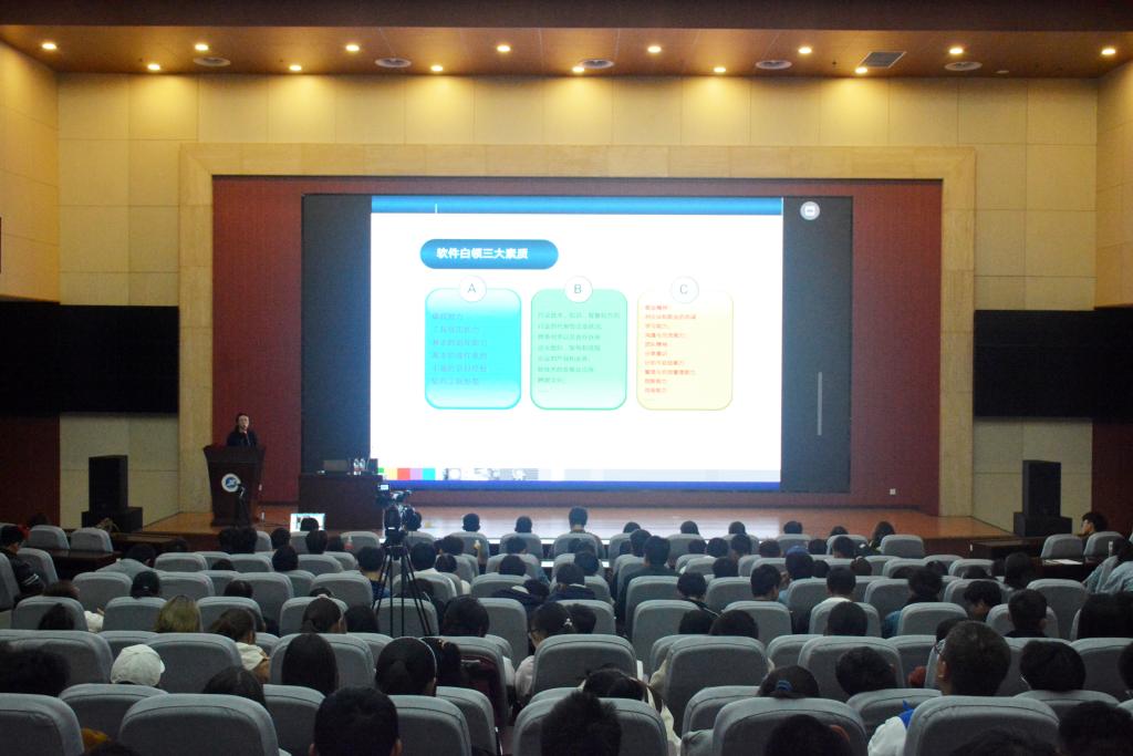 王鶯老師首先以21世紀社會的人才需求作為切入點,強調了計算機行業的從業人員對當前社會所產生的巨大影響。隨后,王鶯老師通過分析我校計算機類專業的課程設置,詳細向學生闡述了計算機行業從業者所需要具備的基本能力以及未來的職業素質養成和愿景規劃。最后,王鶯老師站在一名企業管理者的角度,向同學們說明了當前的計算機企業需要的人才應具備的個人品質和職業素養,告誡同學們在大學的四年學習生活中,不能僅局限在課程的學習中,一定要參與到一個完整的項目中去,熟悉項目流程,理解工程思想,才能更好的掌握所學技術的實際應用。