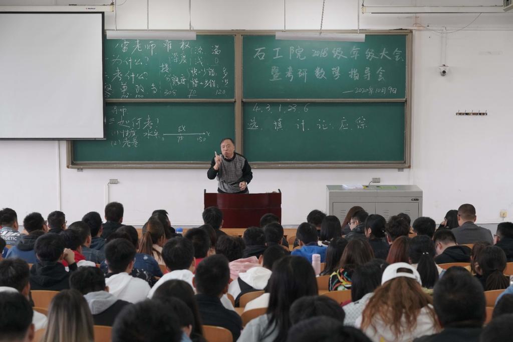 為提升學生對考研的認識,明確考研目標和方向,提供考研成功率,學院邀請理學院雷發社教授開展考研數學指導。雷老師從“為什么”“考什么”“如何考”三個方面向同學們講述了當前形勢下考研抉擇的重要意義、考研數學的重要地位和主要知識點、如何備戰考研數學,他鼓勵同學們敢于突破自我,告誡同學們要重視考研數學的各個知識點的基礎概念和知識應用,提醒要有迎難而上的決心,通過大量的科學訓練增強做題的熟練度。