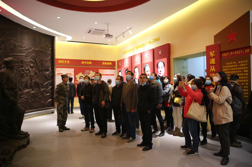 上午10時,一行人來到中國人民解放軍駐渭南某部,參觀“紅一連”連史館,了解部隊建設情況:“1927年9月‘紅一連’參加了秋收起義;‘三灣改編’中,毛澤東同志親自在該連發展6名黨員,建立我軍第一個連隊黨支部;開創了‘支部建在連上’的先河……建連93年來,‘紅一連’始終大力弘揚‘支部建在連上’的連魂,百戰百勝、英勇頑強的戰斗作風,官兵一致和艱苦奮斗的‘紅菜盤精神’,以堅強戰斗堡壘帶出全面過硬連隊?!彪S行人員一邊認真聽取介紹,一邊詢問了解“支部建在連上”的光榮歷程。