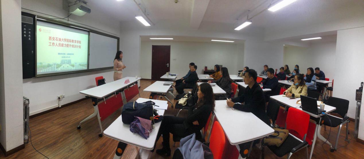 10月15日,國際教育學院工作人員能力提升培訓在在明德校區培訓中心舉辦。根據培訓計劃,培訓第一期邀請了陜西省教育廳對外合作與交流處副處長郭宏毅作來華留學教育方針與政策的專題講座,董皓院長在開班儀式上致辭,副院長顏庭星主持。