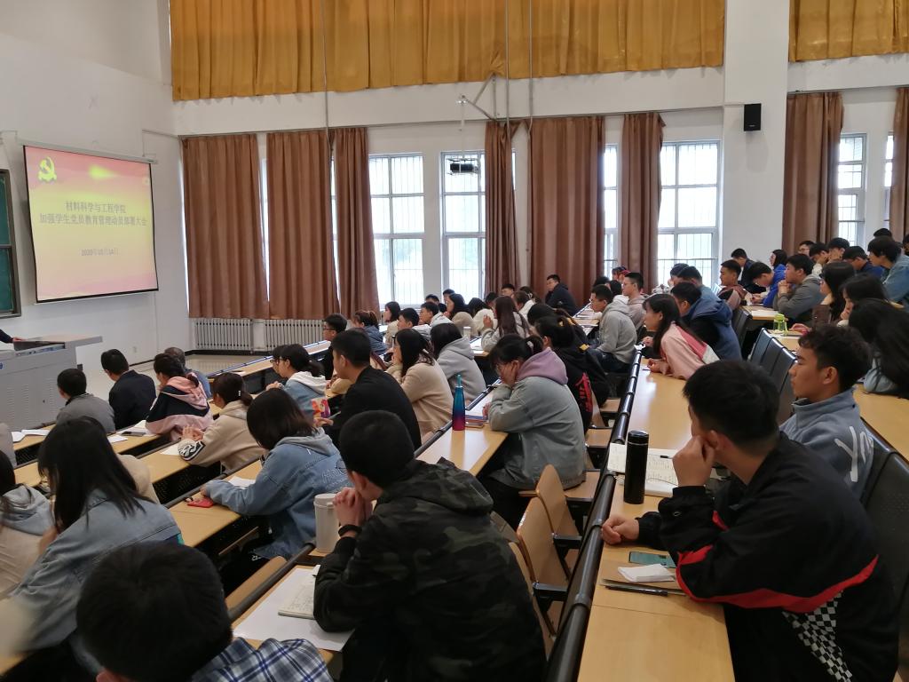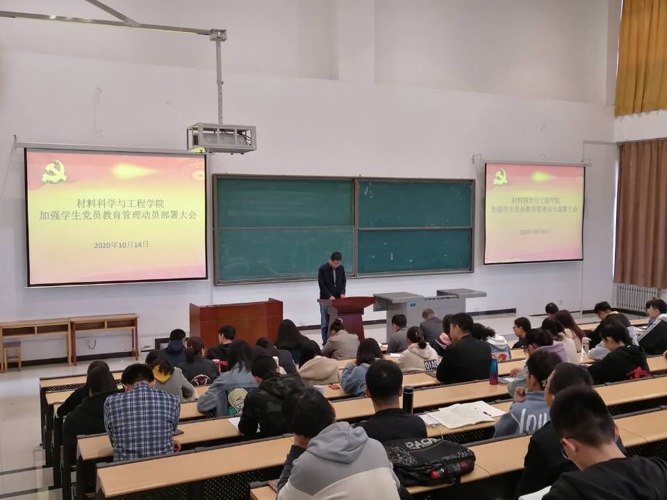 10月14日,材料科學與工程學院在鄠邑校區機械材料樓115召開加強學生黨員教育管理部署動員大會,學院黨委書記齊仲鋒、副書記馬文慶、研究生輔導員、本科生輔導員以及全體學生黨員參加了本次大會,會議由學院專職組織員宋二鵬主持。