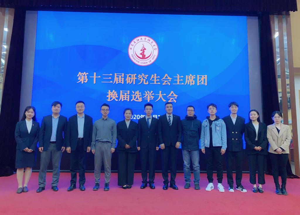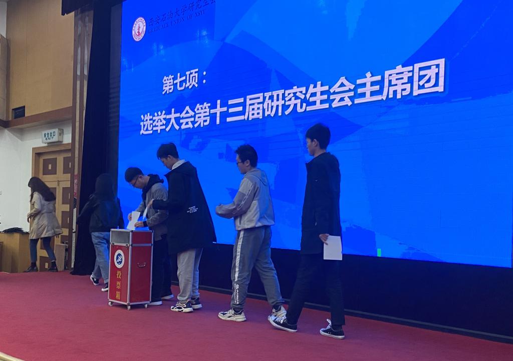 2020年10月12日,第十三屆研究生會主席團換屆選舉大會在我校雁塔校區學術報告廳舉行。黨委研工部副部長李甦,校團委書記何國強,研究生會指導老師阮添舜、姜國平,第十二屆研究生會主席團成員、第十三屆主席團候選人以及來自各院系的96名研究生代表參加大會。