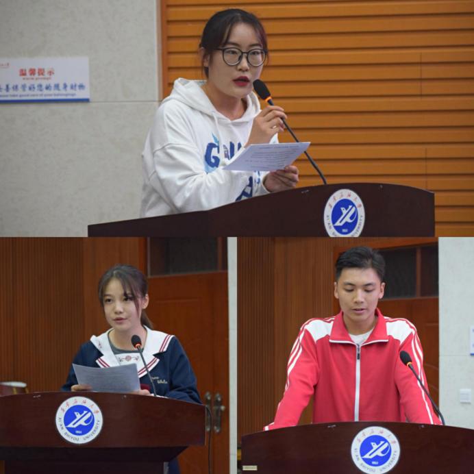 俄語2001班祁裕宸同學和俄語2002班趙思瑤同學作為新生代表上臺發言,2020級研究生韓宇丹作為學長向新入學的同學們同學大學生活學習提出了寶貴建議。