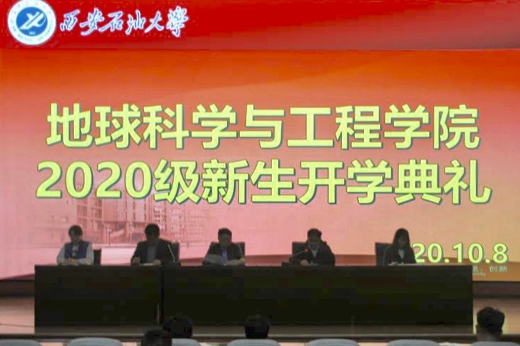 2020年10月8日晚,地球科學與工程學院在鄠邑校區弘石報告廳舉辦2020級新生開學典禮。馬行天書記、孫會珠副書記、2020級輔導員李佩琦出席會議,會議由學工辦主任邱嶺主持,2020級全體本科生參加典禮。