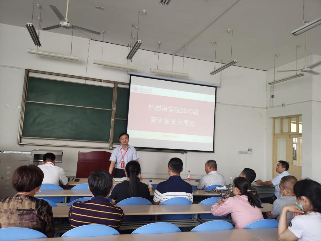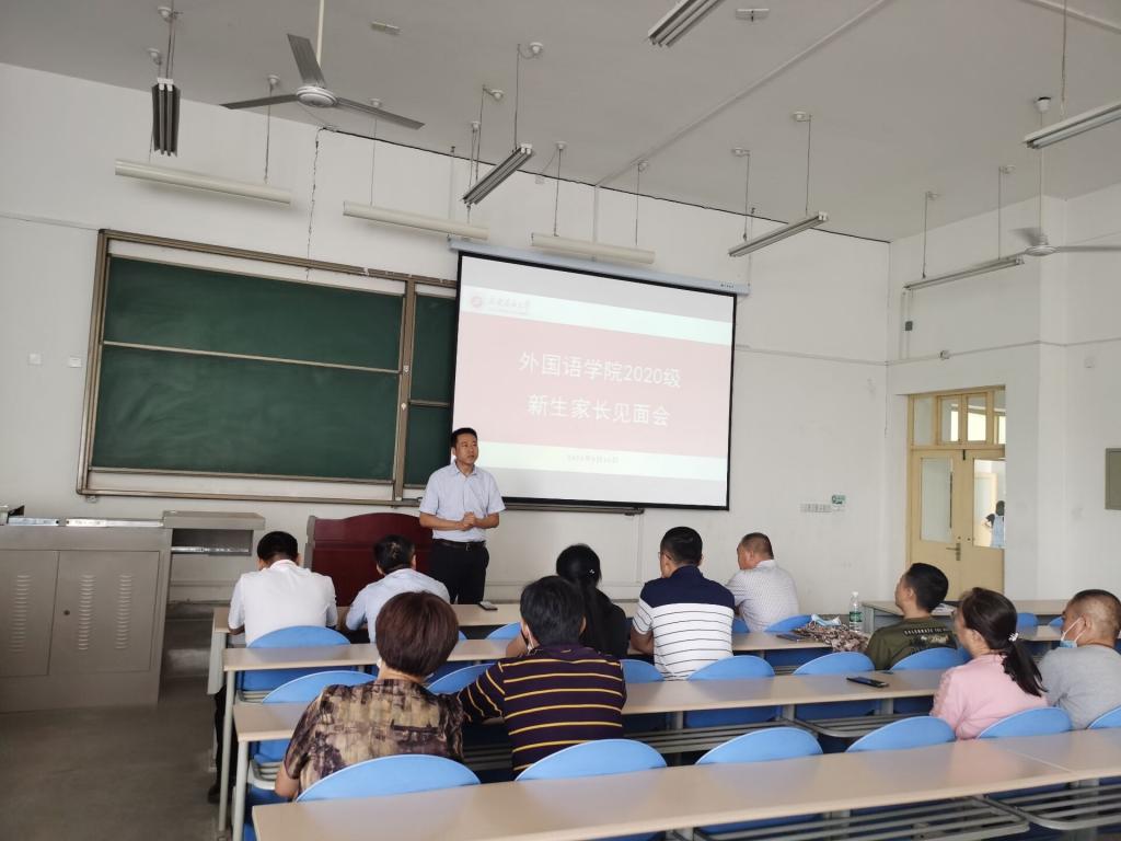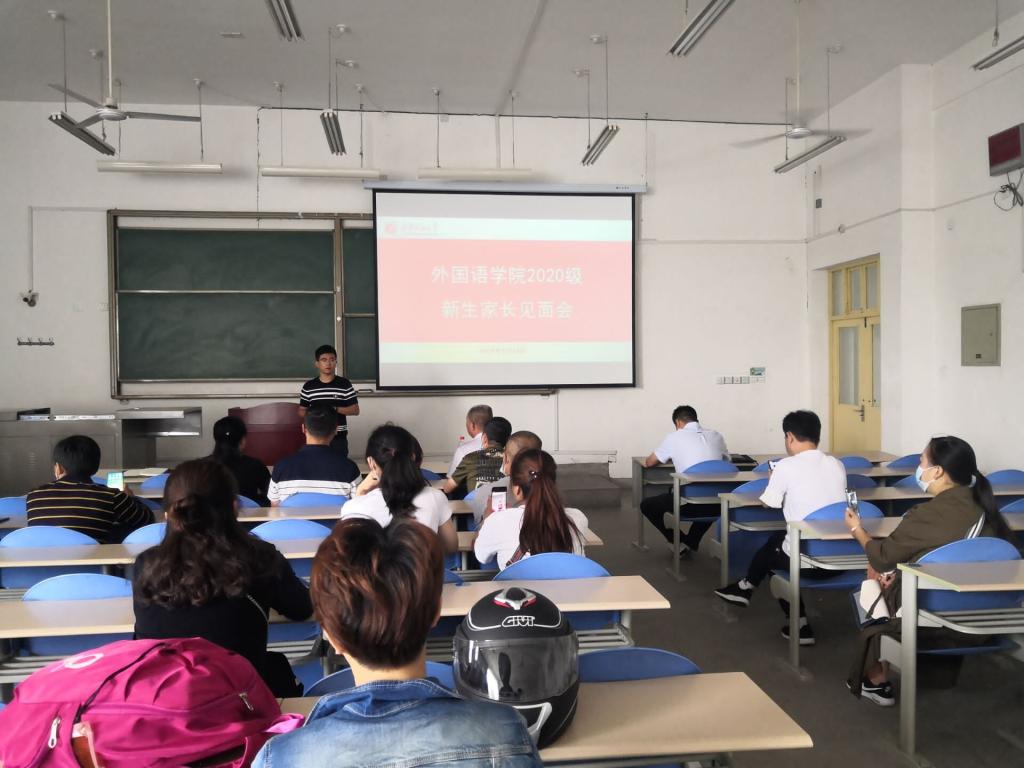 2020年9月16日上午,外國語學院2020級新生家長會在鄠邑校區B區教學樓119室舉行。學院黨委書記蔡強、黨委副書記王業青、副院長陳武、學生工作辦公室主任張帆、新生輔導員陳浩及新生家長參加了本次家長會。為了滿足學生家長需要,本次家長會采取線上線下結合方式,在騰訊會議同步召開。會議由學院學生工作辦主任張帆主持。