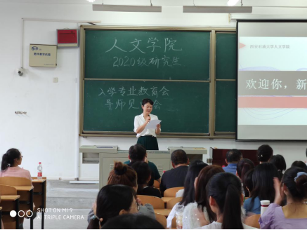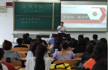 2020年9月11日上午9點,2020級研究生專業教育大會暨導師見面會在人文學院鄠邑校區B210教室正式舉行。本次會議由人文學院副黨委書記盛丹主持,人文學院黨委書記余小勇、院長李濤、副院長方松林、研究生秘書張盼、輔導員崔馨文以及2020級人文學院研究生指導老師出席此次會議,107名2020級研究生新生參會。